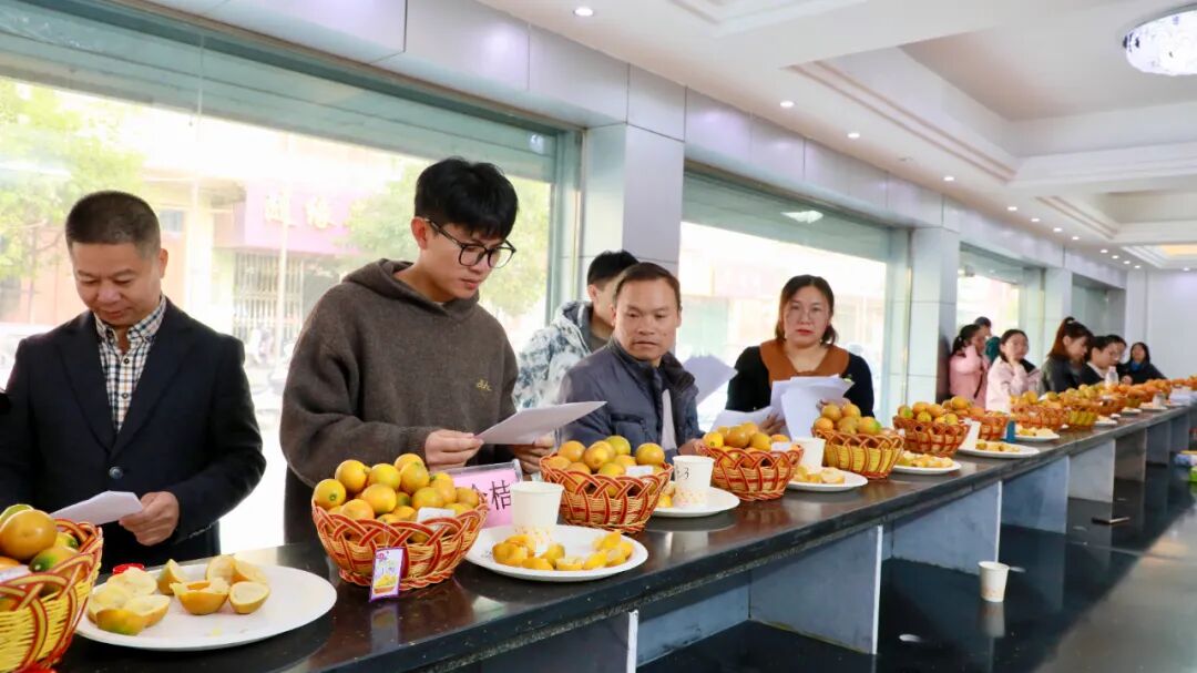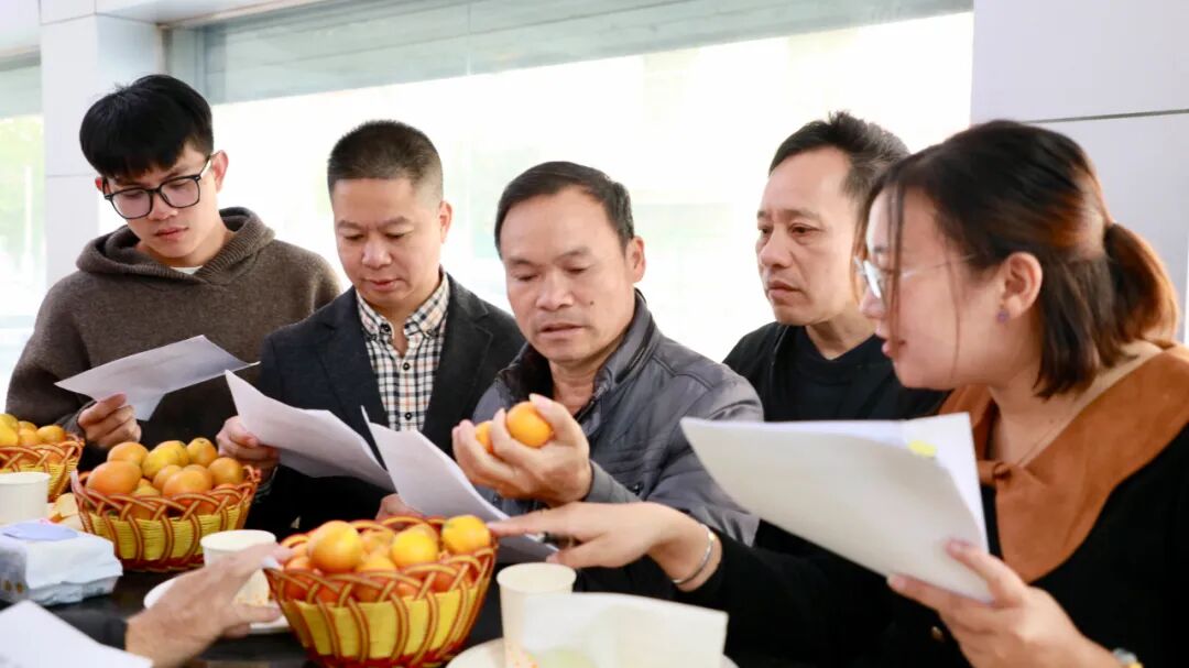 比赛现场人头攒动、气氛高涨。参赛者们满怀期待地将自己精心培育的金桔作为参赛样本呈上,力争在这场激烈的角逐中拔得头筹。此次评比涵盖“滑皮金桔”“脆蜜金桔”两大品种。工作人员秉持公平、公正、公开的原则,严谨操作,从每个参赛样品中随机抽取若干金桔进行称重,对照评分标准,同时对果实外观、形状、大小、化渣程度等进行细致观察,精准比较金桔籽数量,并运用专业设备测定果实甜度。一番紧张较量之后,各品种的金桔王荣耀诞生。