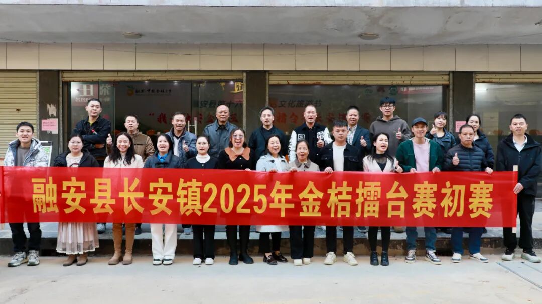 11月26日,融安县第十六届金桔文化旅游嘉年华“我是融安金桔王”金桔擂台赛长安镇初赛现场,参赛者合影留念。(方淑敏 摄)