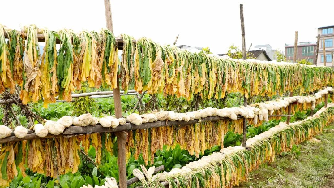 1月5日,在融安县长安镇小洲村拍摄的头菜晾晒场。(邓西妮 摄)