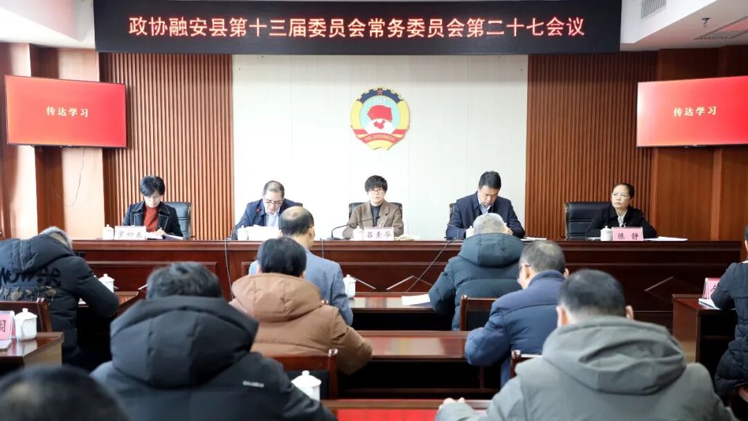 会议传达学习习近平总书记近期重要讲话精神,以及中共中央、自治区党委、柳州市委和融安县委的重要会议精神,听取县政府2025年经济运行情况通报、县公安局重点工作情况通报,审议通过《中国人民政治协商会议融安县委员会委员履职工作实施办法》《中国人民政治协商会议融安县委员会提案工作实施办法》,协商讨论《县政协2026年协商计划》。