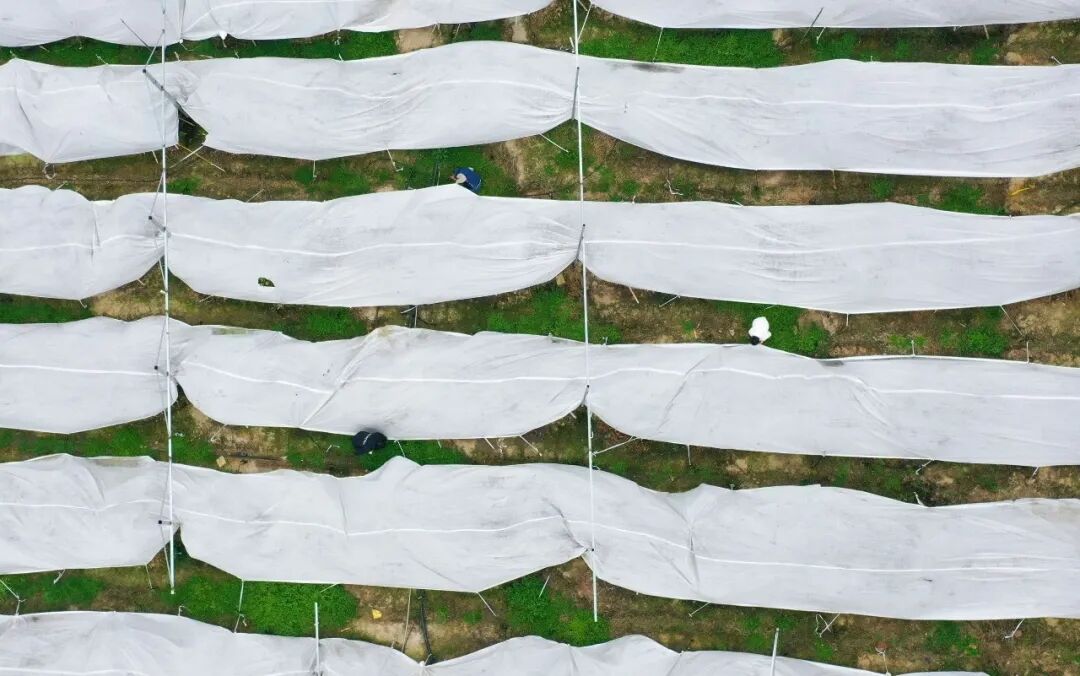 当前,融安金桔正处于采收上市和树体越冬的关键阶段,在融安县潭头乡潭头村大畔洞屯,针对气温骤降,金桔种植户陈朗正在为金桔树加盖防寒膜,通过搭建避寒拱棚覆盖农膜等方式,让自己种植的130亩金桔免受冻害,降低损失。