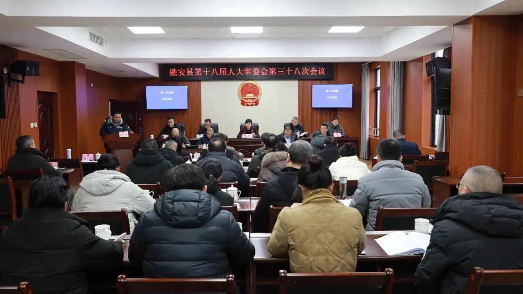 1月21日,融安县第十八届人大常委会第三十八次会议在县商务中心召开。受县人大常委会委托,县人大常委会副主任蒋奎昌主持会议。