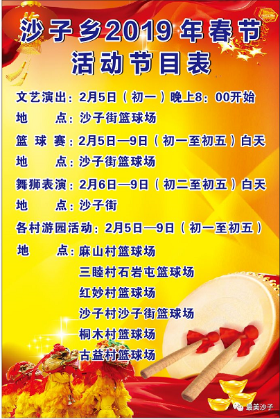 (附:沙子乡2019年春节活动安排表)