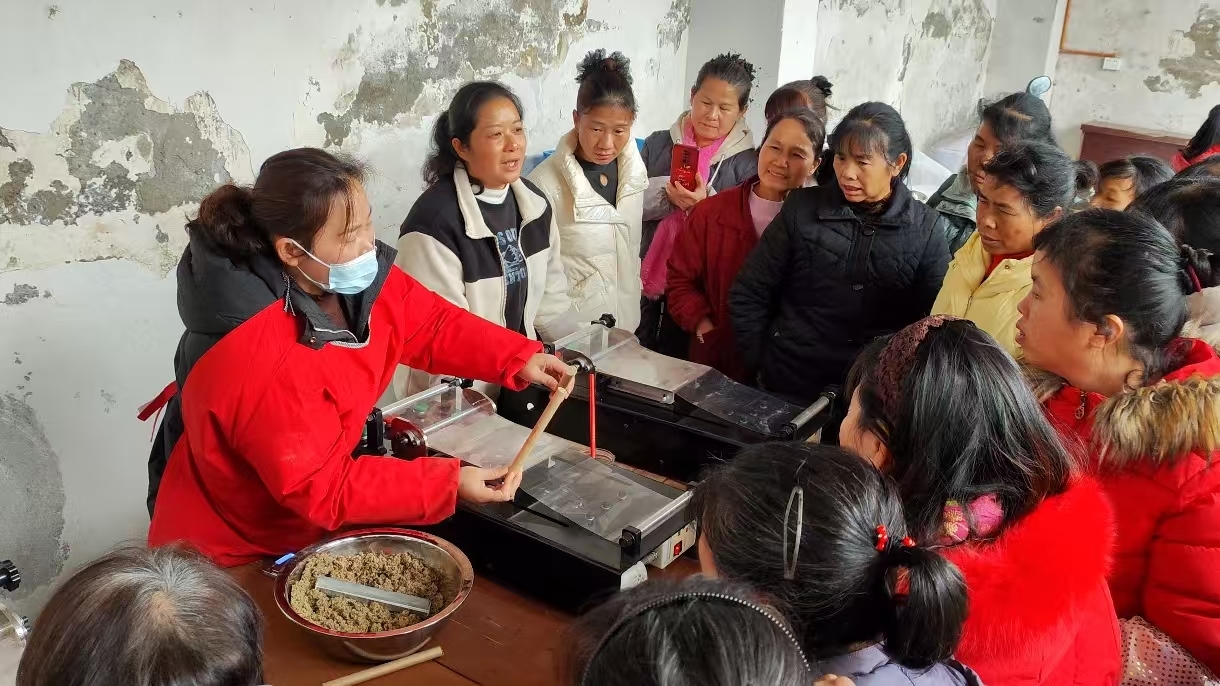 谏村村组织村民学习草珊瑚艾条加工
