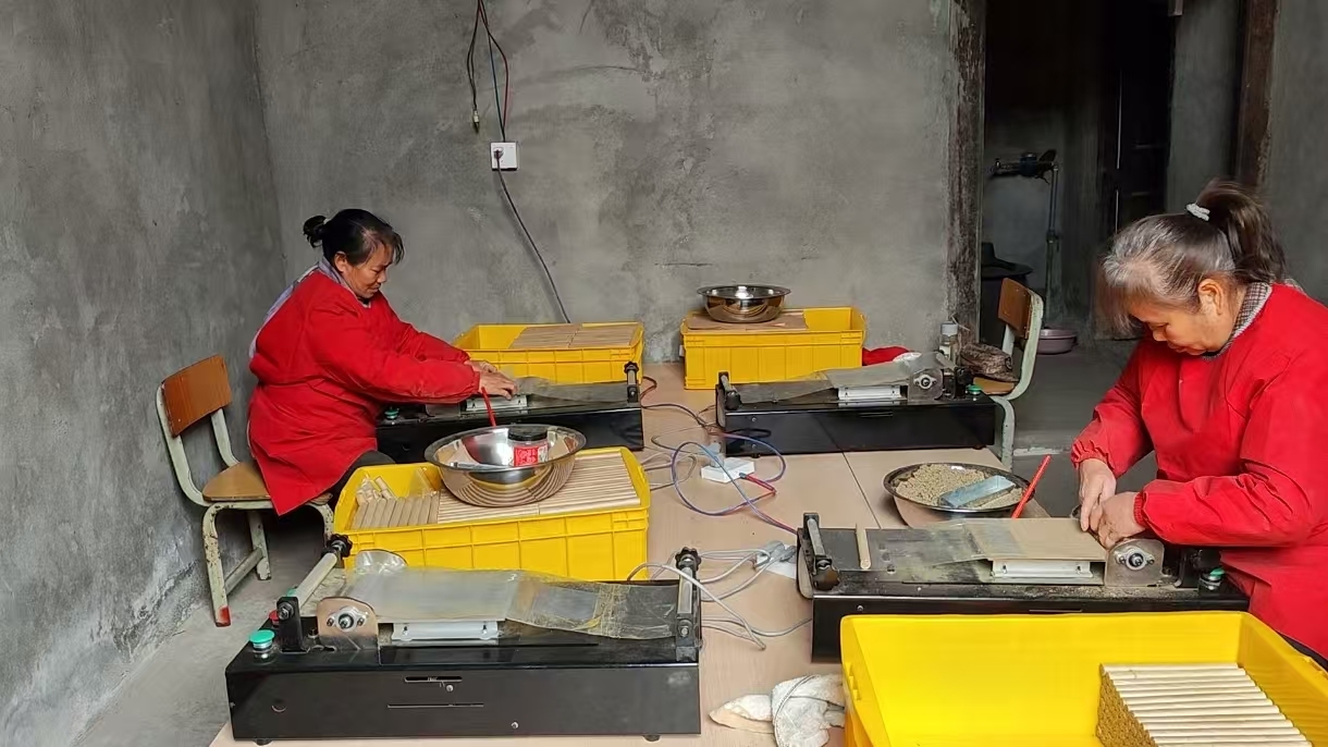 六寮村余家屯代加工点正在生产草珊瑚艾条