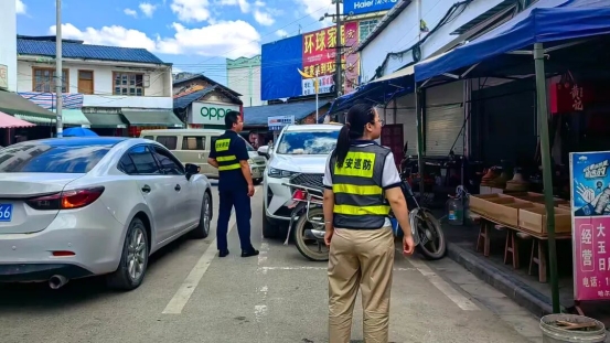 国庆、中秋“双节”期间,板榄镇值班干部在板榄街疏导交通。