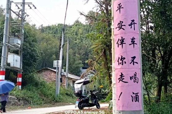 国庆、中秋“双节”期间,板榄镇在道路沿线和村屯公告栏张贴的交通安全宣传标语。