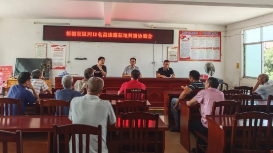 板榄社区河口屯高速路征地纠纷协调会现场。(李环章 摄)