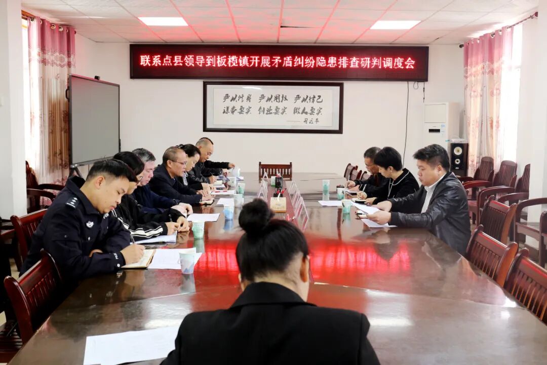 11月5日,在板榄镇人民政府会议室拍摄的县领导到板榄镇开展矛盾纠纷隐患排查研判调度会会议现场。(武巍 摄)