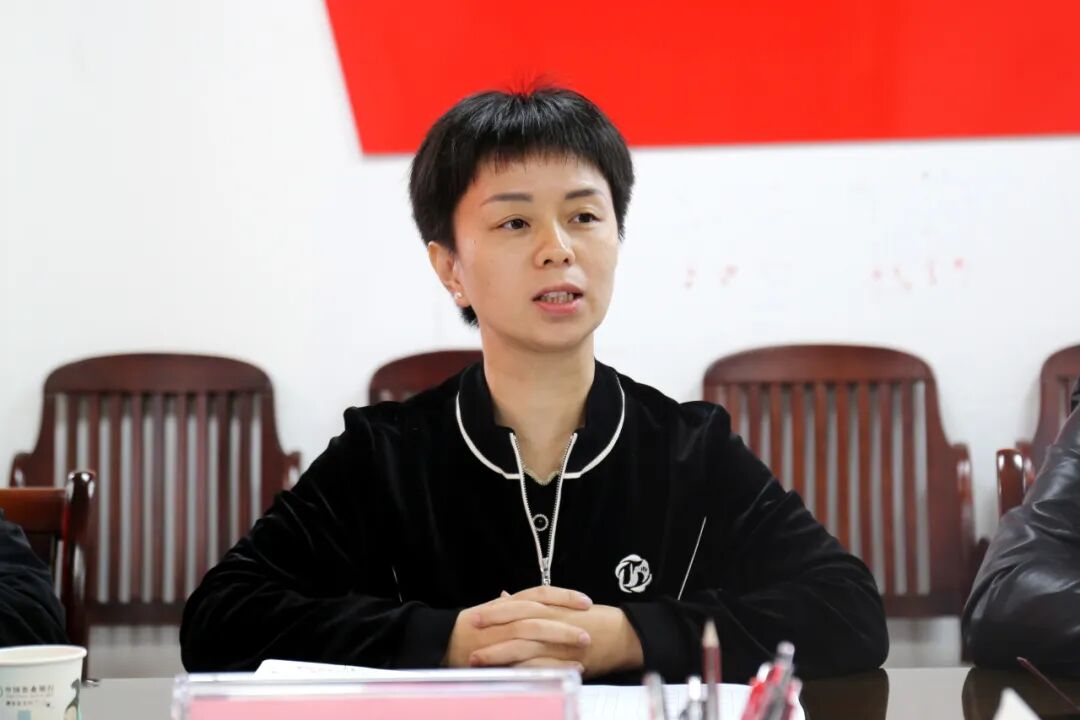 11月5日,在板榄镇矛盾纠纷隐患排查研判调度会会议现场,县委常委、县委统战部部长唐瑗讲话。(武巍 摄)