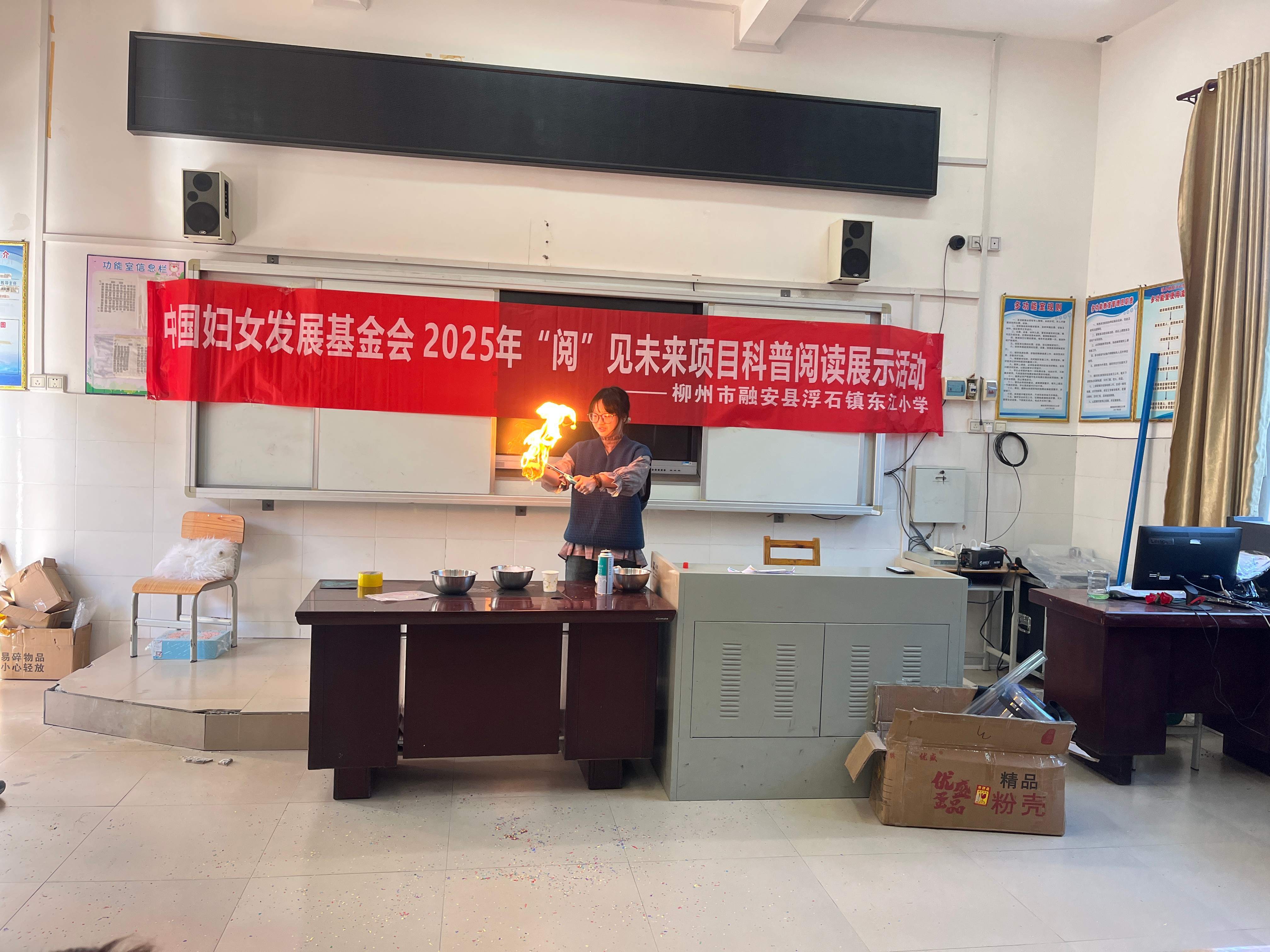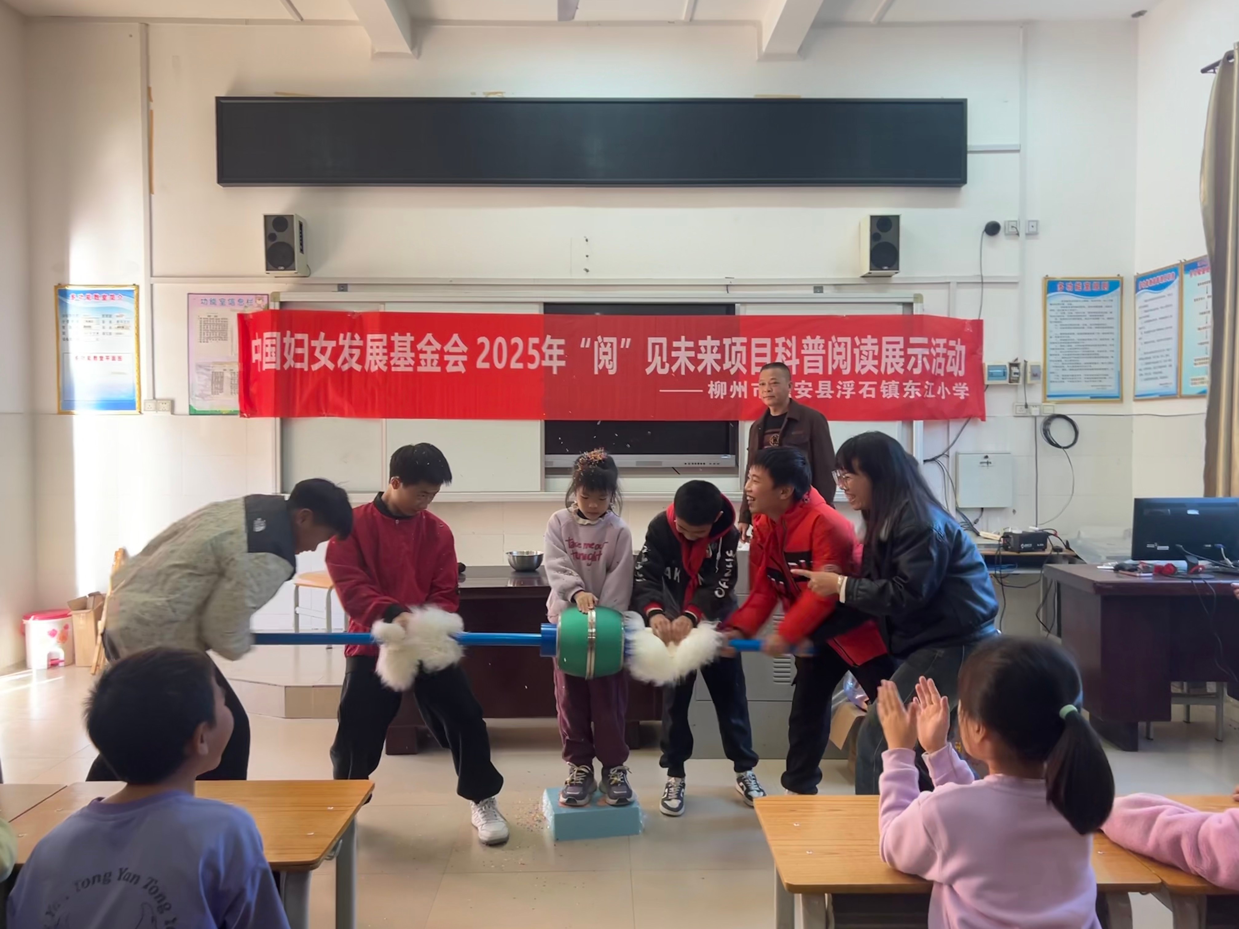 11月26日下午,浮石镇东江小学的校园里暖意融融、新意涌动。由浮石镇新时代民政服务站和中国妇女发展基金会共同举办的“阅”见未来项目科普阅读展示活动在这里拉开帷幕。继此前图书捐赠之后,本次活动将趣味科学实验带入校园,让孩子们在亲手操作中感受书本知识的魅力。