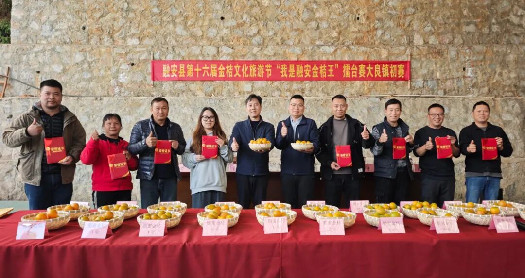 12月1日,融安县第十六届金桔文化旅游节“我是融安金桔王”擂台赛大良镇初赛合照。