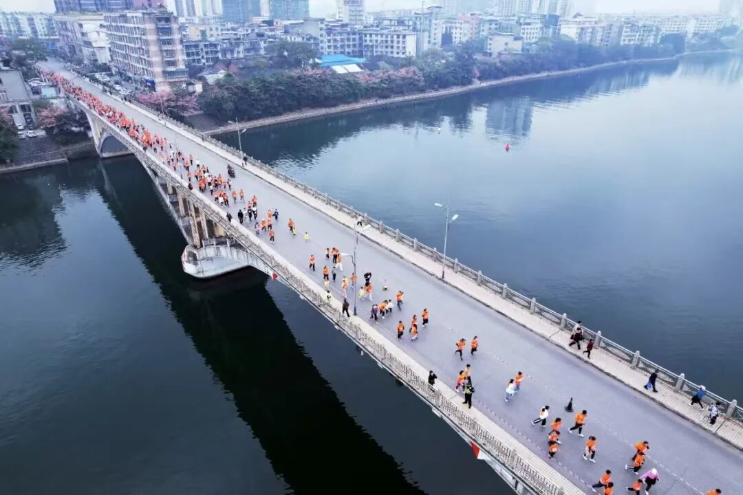 长跑路线(15.69KM):长安广场[起点]→融州路→大桥东路→长安大桥→新民路→143乡道→桔园村路→阳春头村路→桔园村路→143乡道→新民路→长安大桥大桥东路→融州路→长安广场[终点]