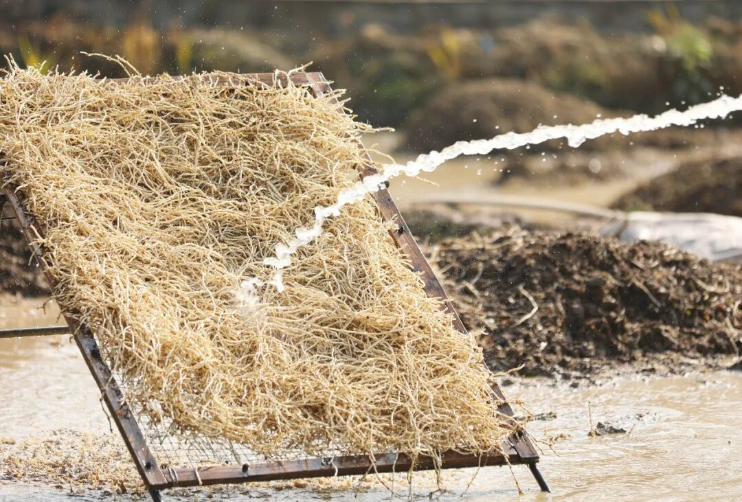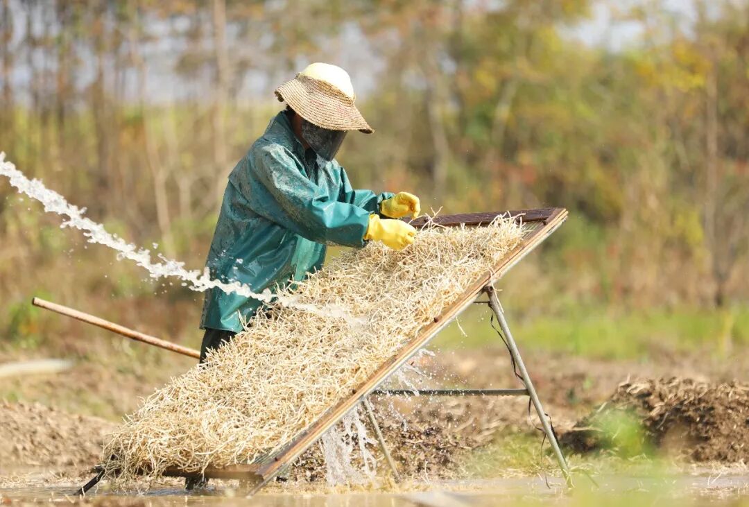 走进融安县大良镇龙山村龙杏屯田间地头,清冽的鱼腥草香气扑面而来。当地群众正抢抓采收关键期,熟练地用农具翻开泥土,将盘根错节的鱼腥草根挖出,并手持高压水枪冲洗根部附着的泥土,白嫩的根茎逐渐显露,分拣装车后等待售往市场。