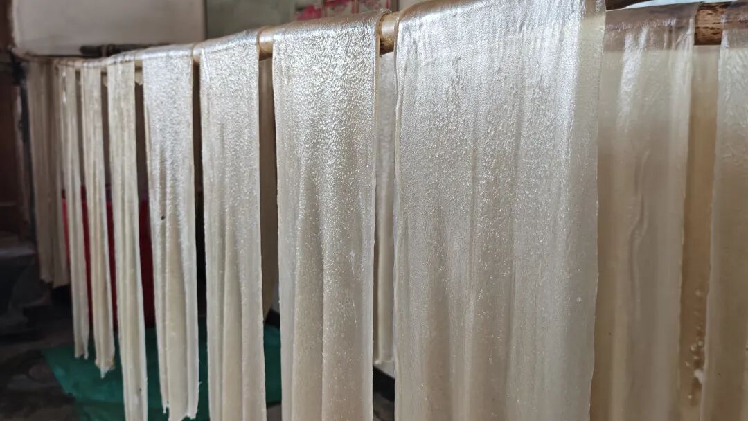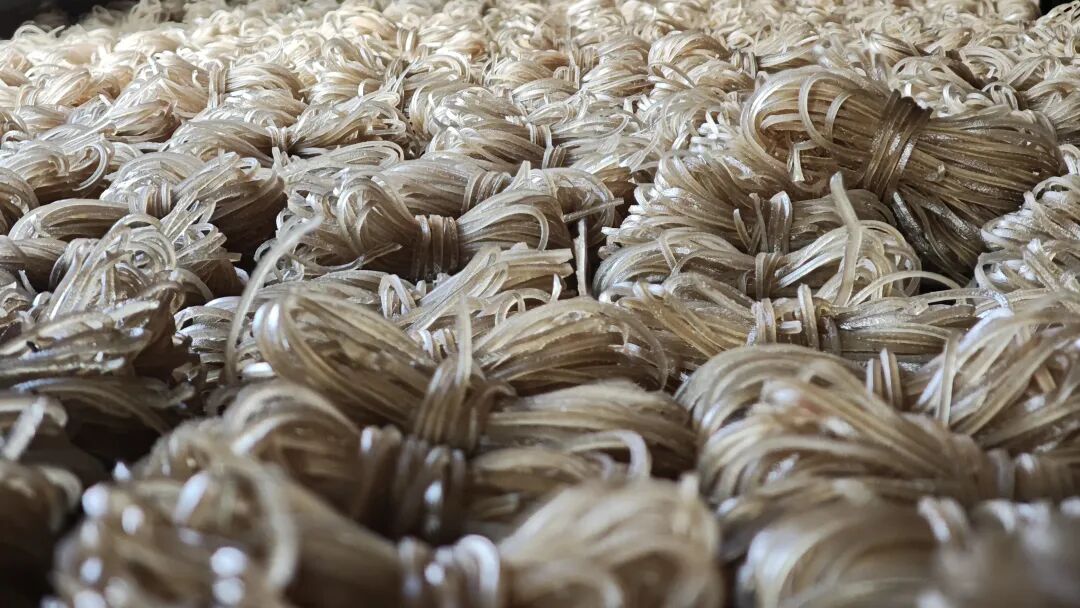 红薯粉,作为低脂、高纤维的健康食材,市场前景广阔。“我们这个红薯粉,好多人喜欢,你看这里都是人家定要的,都是给了定金的。”吕姐笑盈盈地向我们介绍道。红薯经过清洗、粉碎、沉淀、过滤、勾兑、搅拌、水蒸、晾晒、切丝、捆绑等一道道工序后,方可成为可食用的红薯粉,它传承着多年的前人智慧,现在也创造着新的价值。近年来,它以独特的口感和风味一跃而成冬日餐桌上的俏客。
