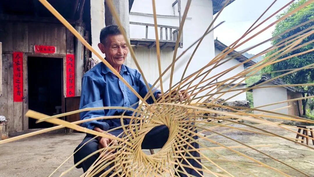 在板榄镇龙纳村,群众正在自家庭院为板榄竹艺馆制作竹编。(武巍 摄)