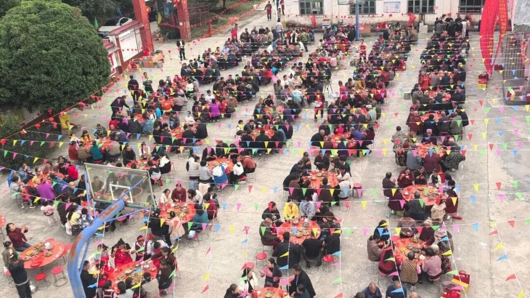 在板榄镇马步村重阳节活动晚宴现场。(韦香怡 摄)