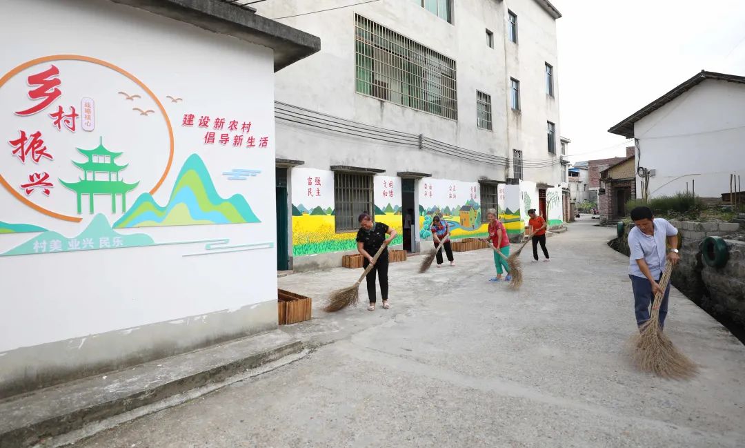 2021年8月,在融安县大良镇山口村木林屯,村民在打扫屯内卫生。(滕以洪 摄)