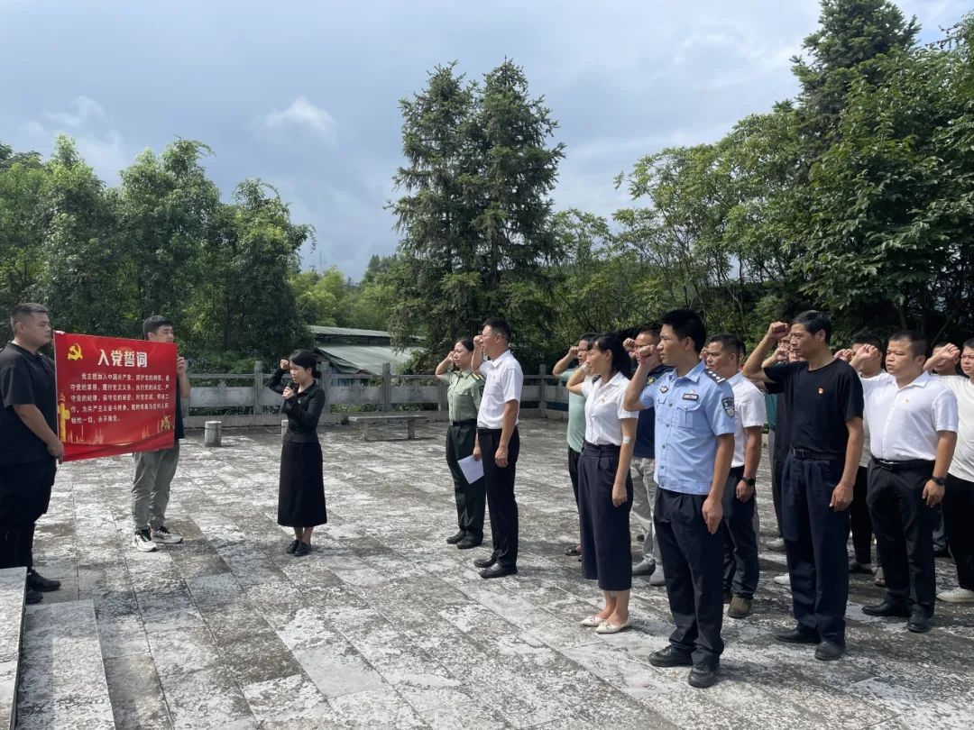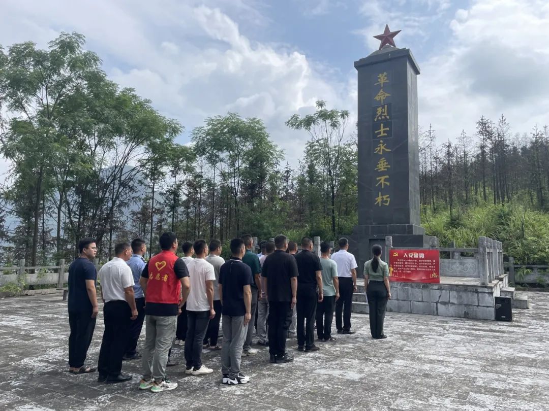 8月1日上午,在浮石镇烈士陵园祭扫现场,全体人员重温入党誓词。