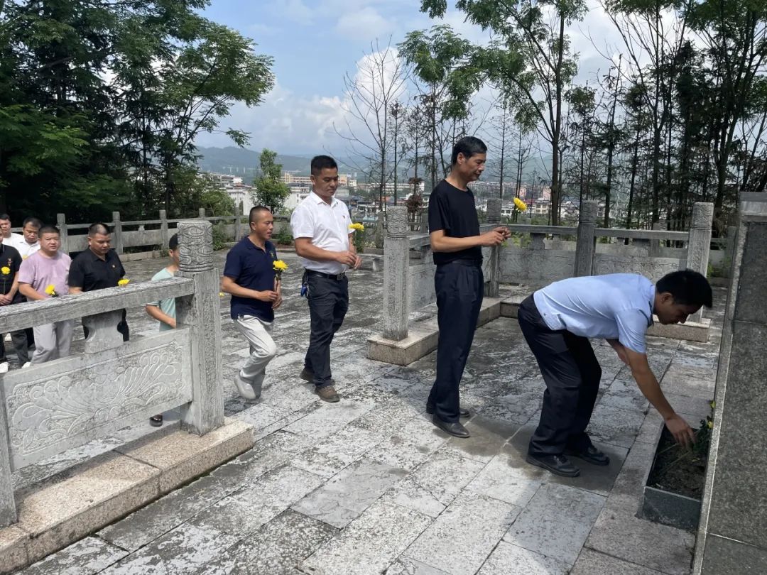在浮石镇烈士陵园,全体人员奏唱国歌、向烈士默哀致敬、行三鞠躬礼,在镇人大主席韦宇琪的带领下,大家重温入党誓词,并依次敬献鲜花。