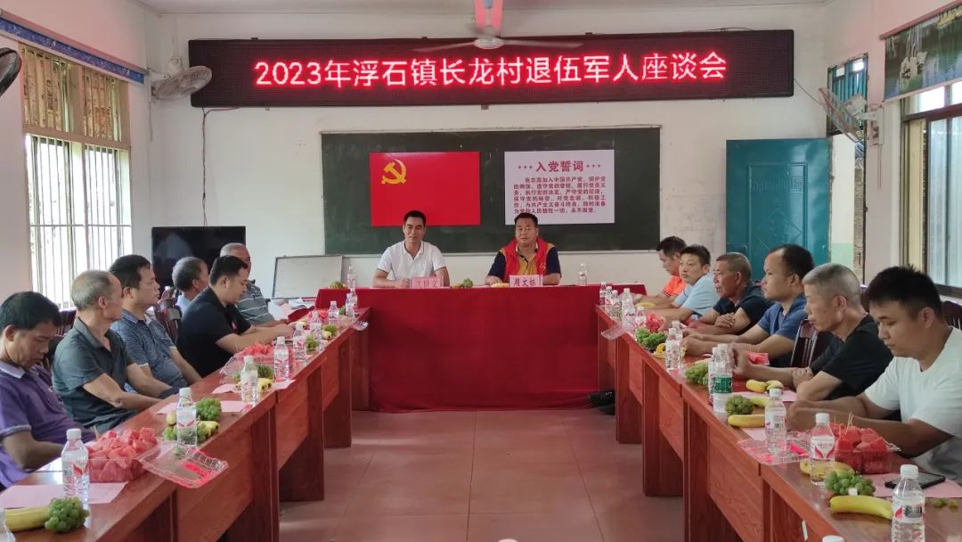 当日,浮石镇长龙村也召开了退役军人座谈会。退伍老兵齐聚一堂,共话发展。