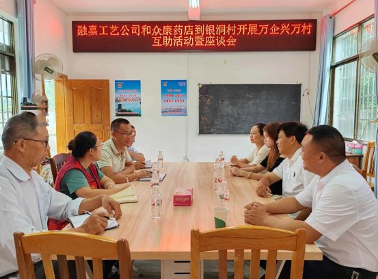 村企共建,助力振兴。8月2日,爱心企业融嘉工艺有限公司联合众康大药房到融安县长安镇银洞村开展“万企兴万村”互助活动。