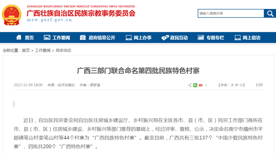 近日,自治区民宗委会同自治区住房城乡建设厅、乡村振兴局在全区各市、县(市、区)民宗工作部门商所在市、县(市、区)住房城乡建设、乡村振兴等部门推荐的基础上,经过评审、复核、公示,决定命名南宁市横州市平郎镇笔山村委笔山村等44个村寨为“广西民族特色村寨”。其中,柳州市融安县雅瑶乡大琴村坡伟屯上榜。截至目前,雅瑶乡荣获“中国少数民族特色村寨”“广西特色村寨”各1个。