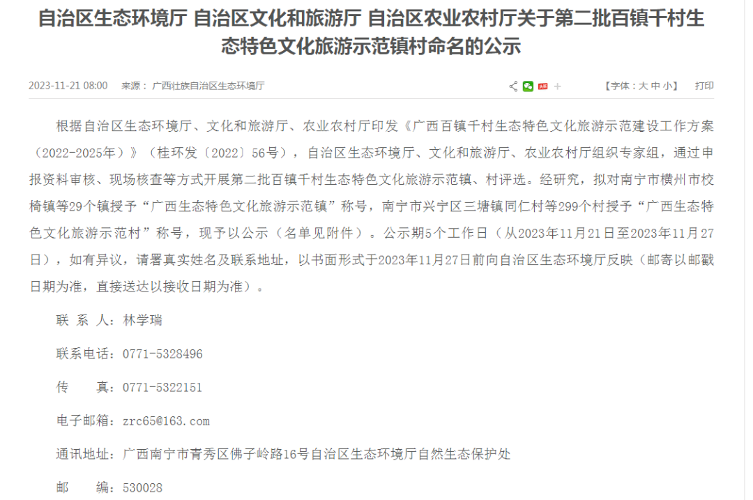 广西生态特色文化旅游示范村