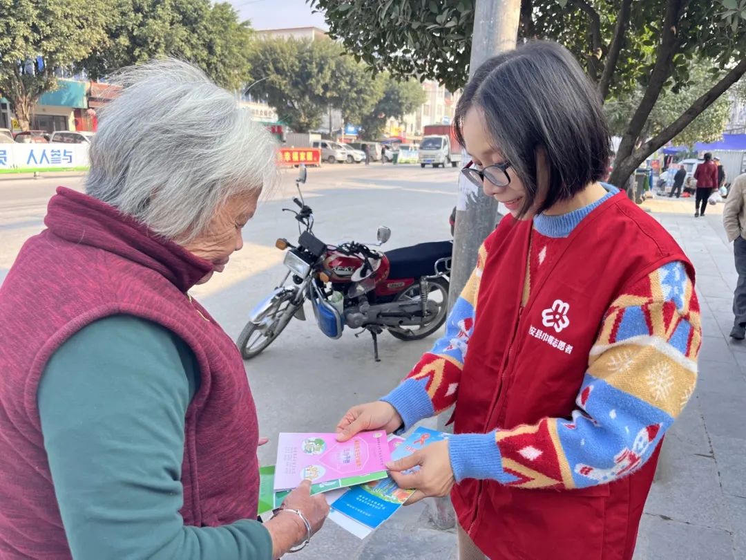 11月29日,浮石镇“世界艾滋病日”主题宣传活动现场,志愿者正在向群众宣传艾滋病相关知识。