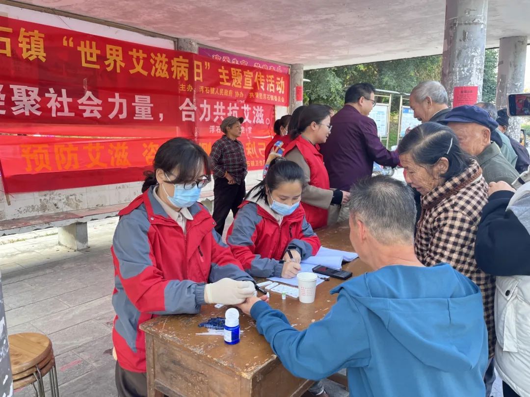 11月29日,浮石镇“世界艾滋病日”主题宣传活动现场,医护人员正在为群众进行艾滋病检测监测。