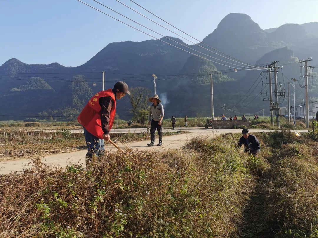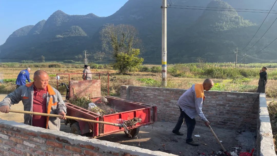 ▲11月27日,融安县桥板乡古板村拉范屯村民参与乡村人居环境整治。
