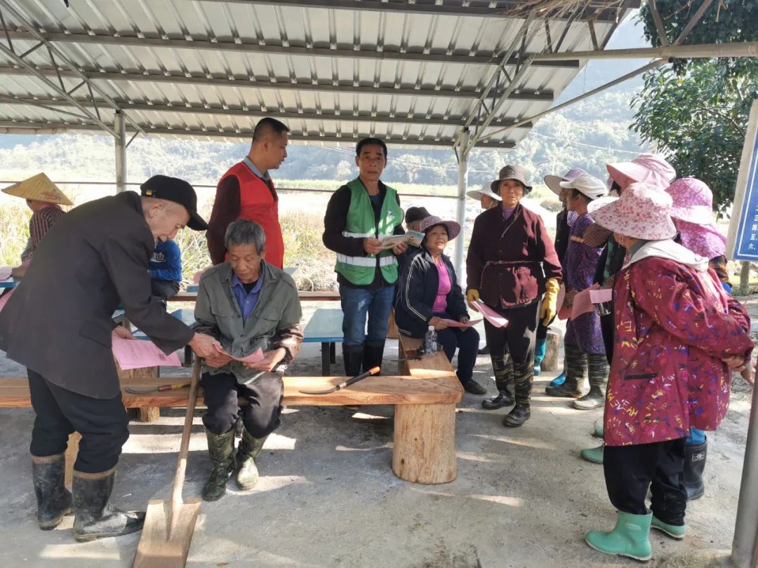 11月27日,融安县桥板乡古板村组织流动“积分超市”车在村里跑了起来。该村驻村工作队员根据评分规则,向拉范屯参加乡村环境卫生整治、清理沟渠活动和宣传城乡居民医疗保险、防艾、禁毒知识的村民现场发放乡村治理积分卡片,农户凭借手中的积分卡兑换相应价值的生活用品。