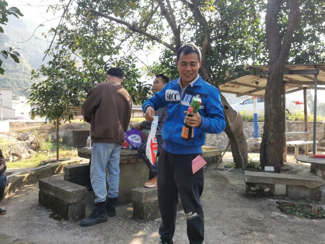 ▲11月27日,融安县桥板乡古板村驻村工作队员、村“两委”干部组织“积分超市”车开进该村拉范屯。
