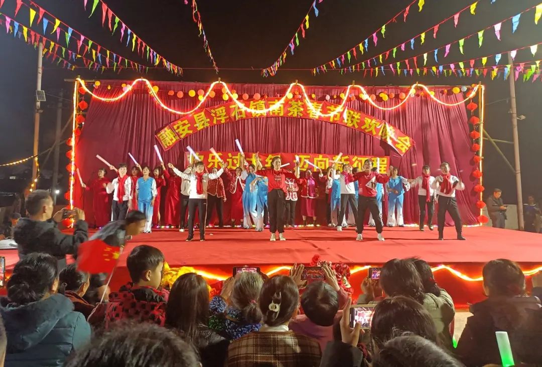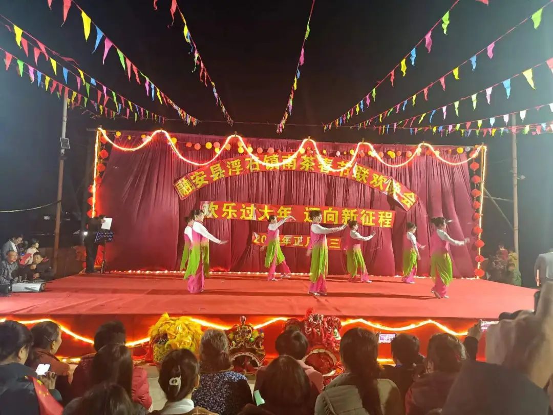 2月12日,浮石镇小律村南茶屯举办迎春联欢会。村里的文艺队、返乡年轻人和众多“外嫁女”一起表演了歌曲、舞蹈等多个节目。精彩的节目令台下观众拍手叫好。