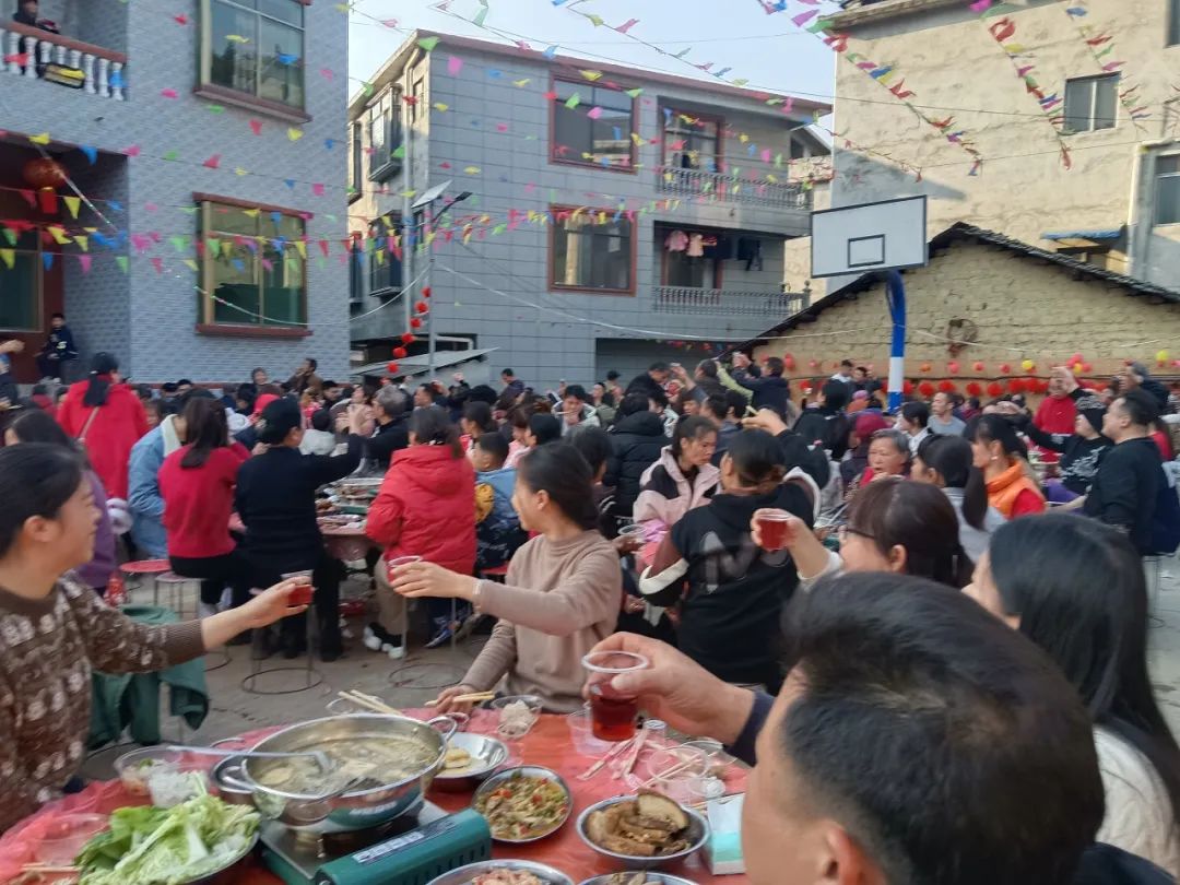 联欢会开始前,全屯的群众还共享新年团圆饭。饭香酒香四溢,村民们围坐在一起,一派新春幸福团圆景象。
