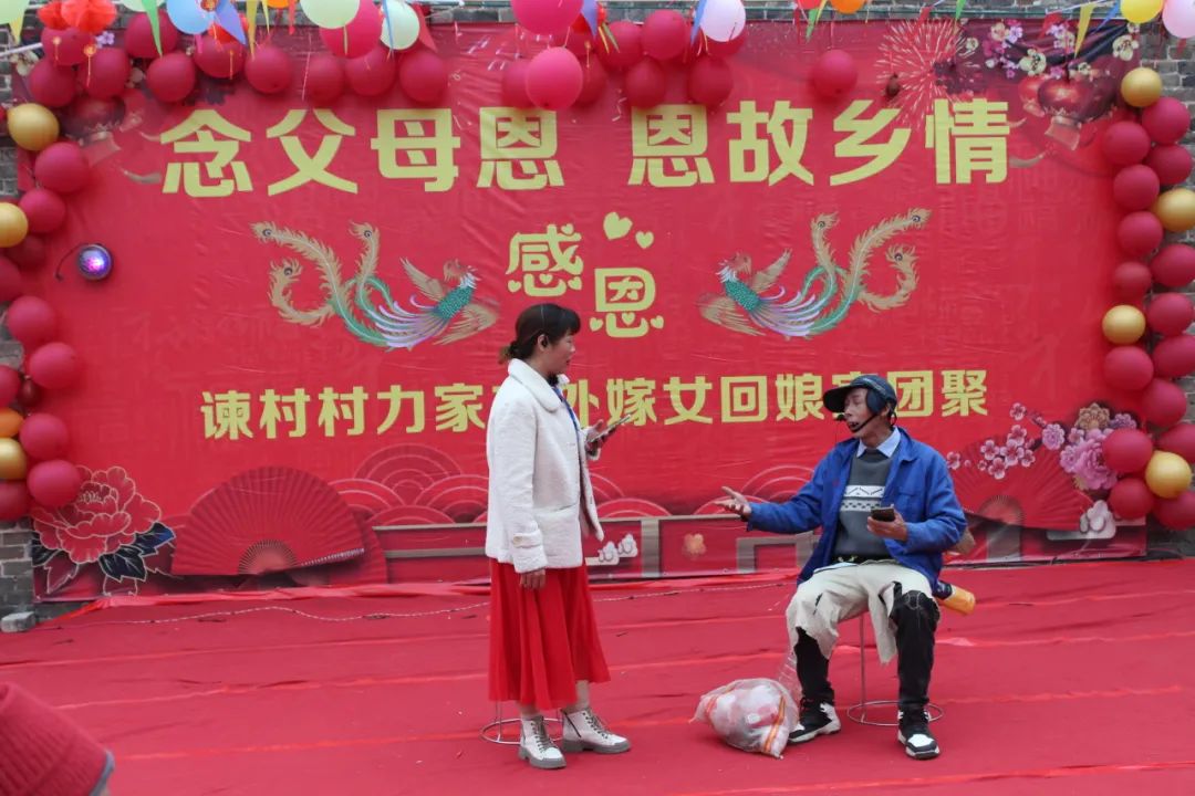 2月14日,正月初五,谏村村力家屯举办“念父母恩 恩故乡情”外嫁女回娘家活动,现场气氛热烈,欢乐十足!