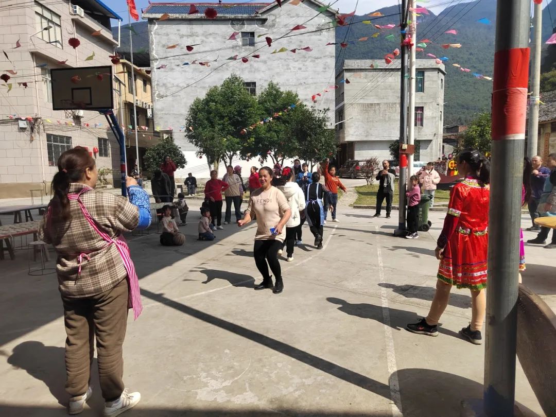 中午12点,在篮球场的戏台开展文艺表演和集体跳大绳等文体活动。下午4点30分,长桌宴开始,全屯群众相聚一起吃年饭、叙乡情。