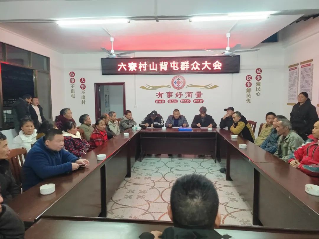 2月7日晚,六寮村山背屯召开群众大会商议集体过年活动事宜