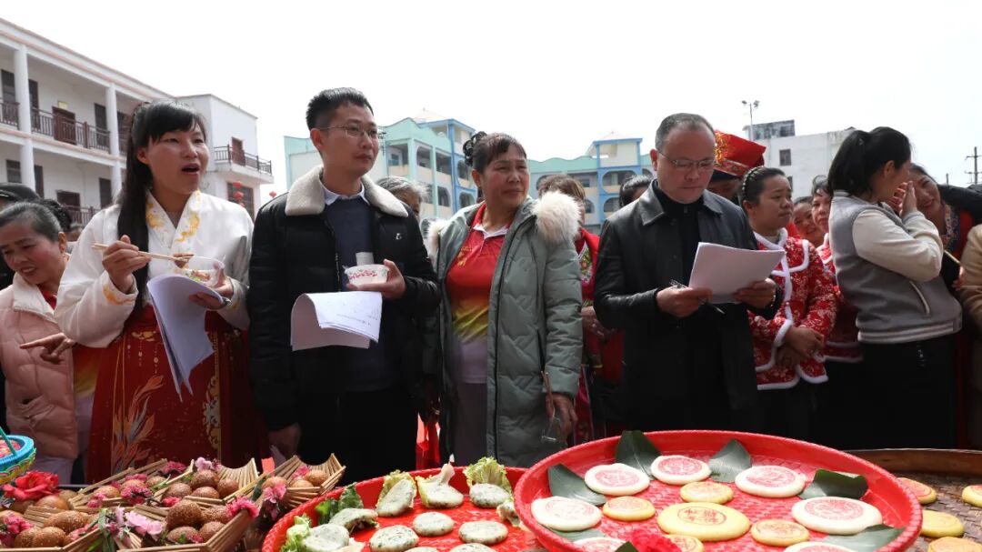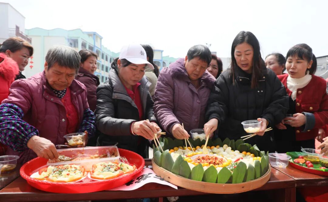 孔雀宴、槐花粉、豆腐花、豆浆、红薯油蛋、铜瓢粑、汤圆、蒸平粉、打糍粑......在板榄传统美食文化“双学双比”擂台赛上,各村代表队一个个拿出绝活,现场制作传统美食,大家相互切磋技艺,在一片欢笑声中,一盘盘色香味俱全的美食呈现在大家眼前。经过现场评委和观众评分,评选出各类美食一、二、三等奖并进行现场颁奖。