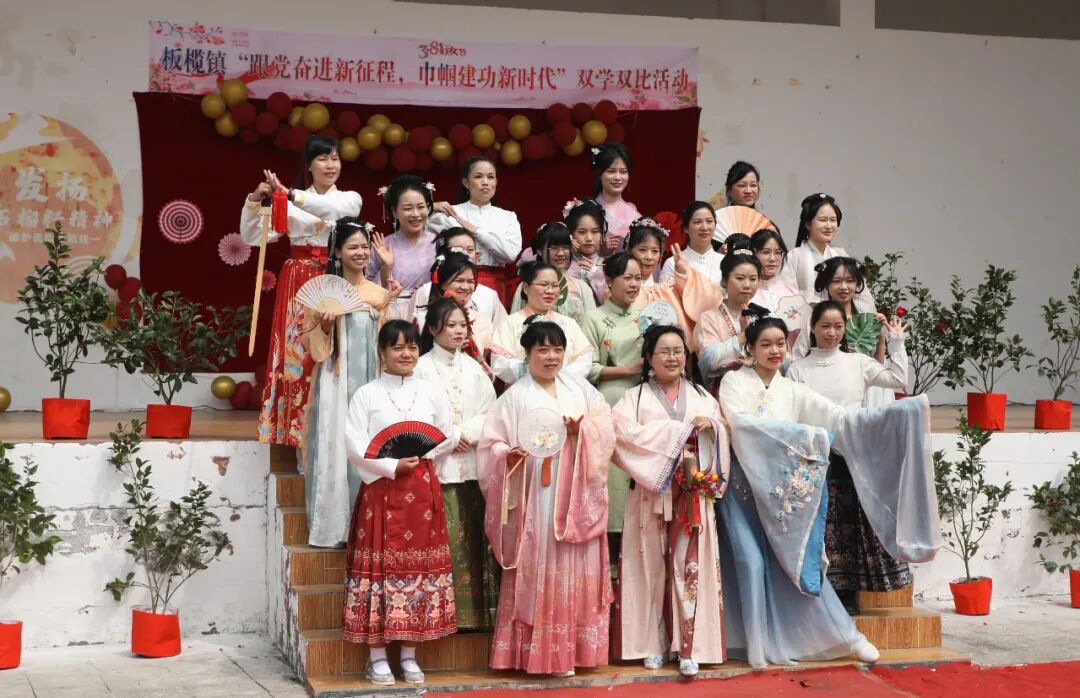3月6日,融安县板榄镇举行“追梦新时代 巾帼展芳华”双学双比迎“三八”活动,各民族姐妹身着节日盛装,用丰富多彩的活动展现巾帼风采,展现广大板榄女性昂扬向上的活力,团结全镇各族妇女踔厉奋发、勇毅前行,为着力推动板榄经济社会高质量发展贡献巾帼力量,共同唱响“民族团结一家亲”的优美旋律。