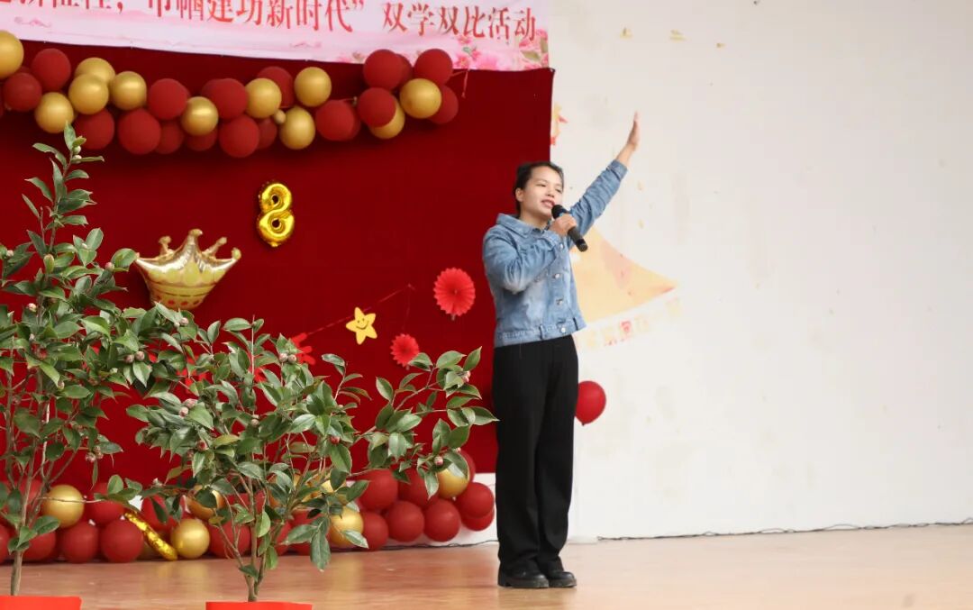 3月6日,在融安县板榄镇欢歌广场拍摄的板榄镇“三八”活动现场,板榄镇党委书记刘文静致词。(武巍 摄)