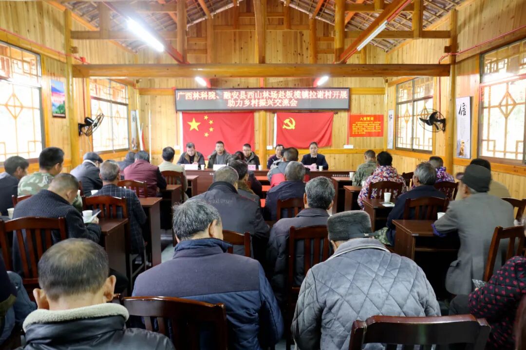 3月5日,在板榄镇拉谢村会议室拍摄的广西林科院、融安县西山林场、融安县文体广旅局赴拉谢村助力乡村振兴交流会活动现场。(武巍 摄)