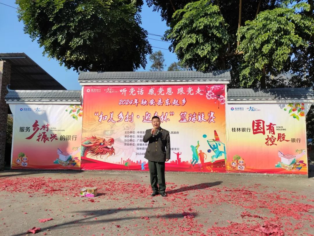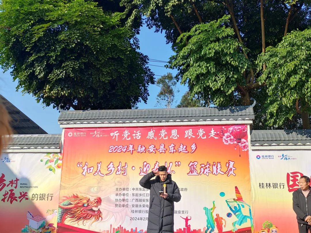 2024年融安县东起乡 “和美乡村·迎春杯”篮球联赛比赛现场,东起乡人民政府领导作开幕仪式致辞。