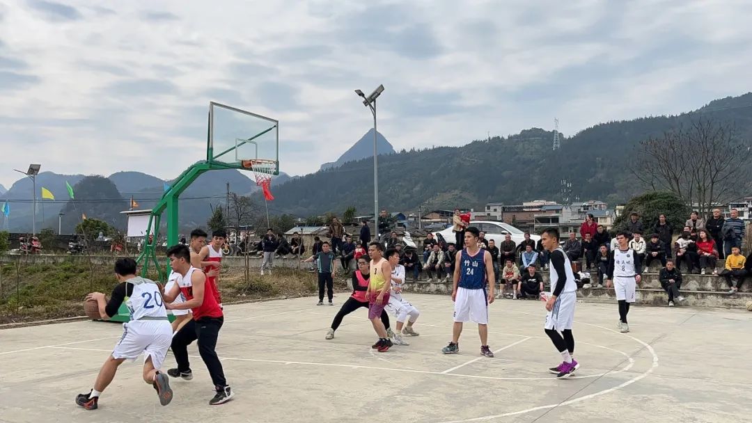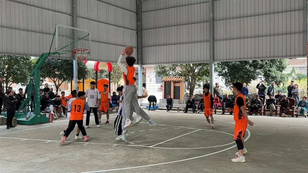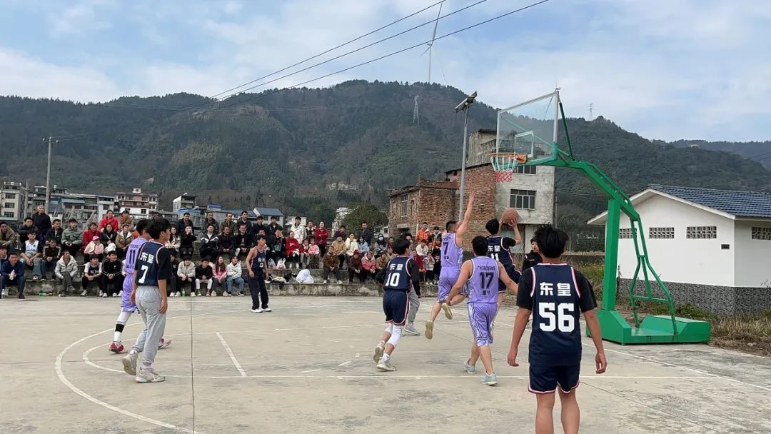 在比赛中,球员们意气风发、身手矫健,随着开赛哨声响起,发球、运球、接球、跳投、上篮等动作行云流水,一气呵成。比赛双方比分交替上升,接连不断的精彩进球、酣畅淋漓的精彩角逐点燃现场氛围,好不热闹。看台两边挤满了观众,全场热情高涨,呐喊助威声震耳欲聋,极具看点,乡村文化新活力令人印象深刻。