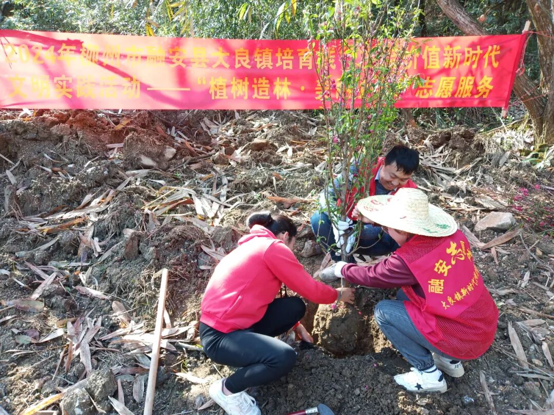 春风吐绿,草长莺飞,正是植树添绿好时节。3月12日是第46个植树节,大良镇组织党员干部、志愿者到良北村年洞屯开展2024年柳州市融安县大良镇培育践行主流价值新时代文明实践活动——“植树造林·美丽乡村”志愿服务活动,倡导绿色发展理念,动员党员干部群众共同参与生态文明建设,为打造美丽宜居美丽乡村贡献力量。