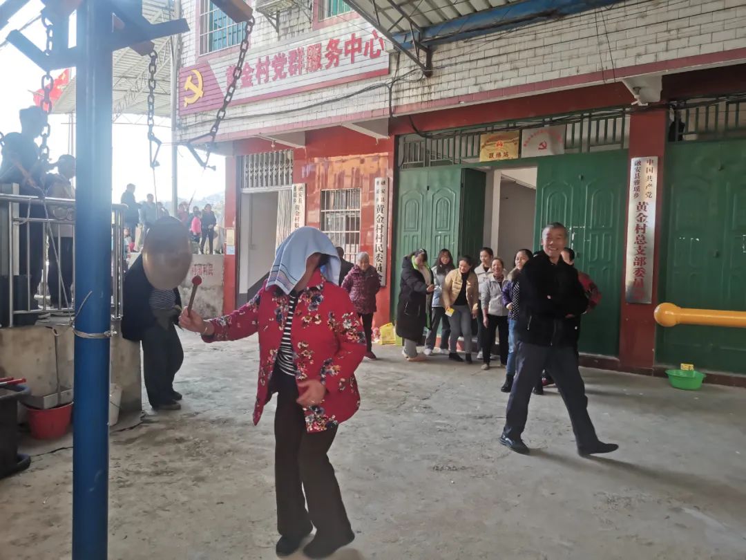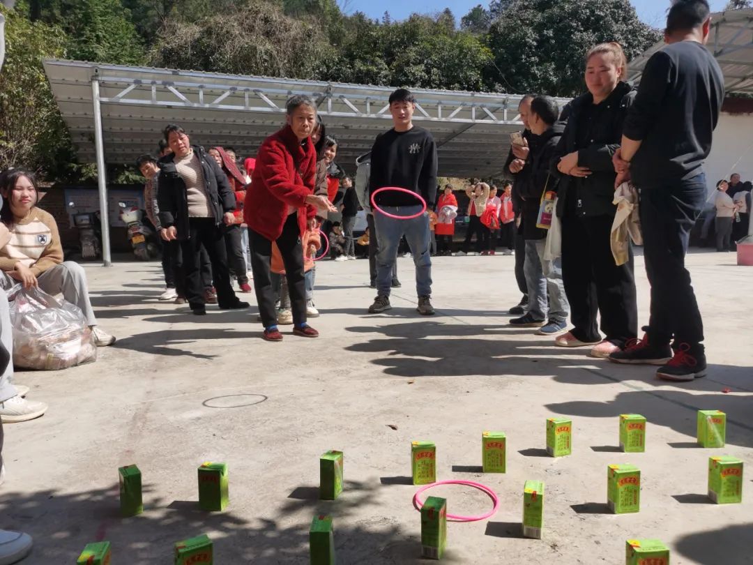 春节期间,各村积极开展下象棋、抛圈、蒙眼敲锣等迎新春趣味游戏活动。