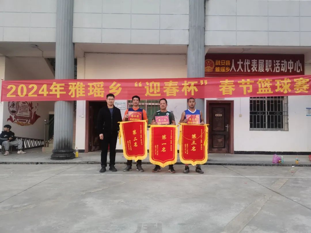 此外,在2月12日,雅瑶乡举办了2024年“迎春杯”春节篮球赛完美落幕。本次比赛,雅瑶乡各村共计8支队伍参赛,经过激烈角逐,章口村、雅瑶村、冠带村队分别获得冠亚季军。