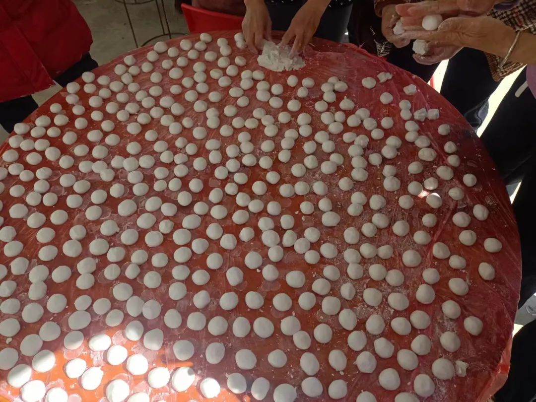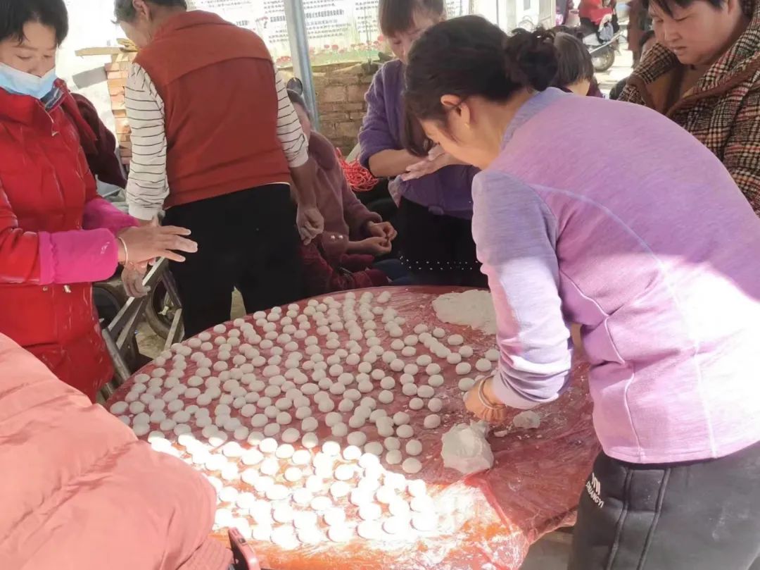 大年初二,冠带村充分发挥群众力量,开展制作汤圆活动。