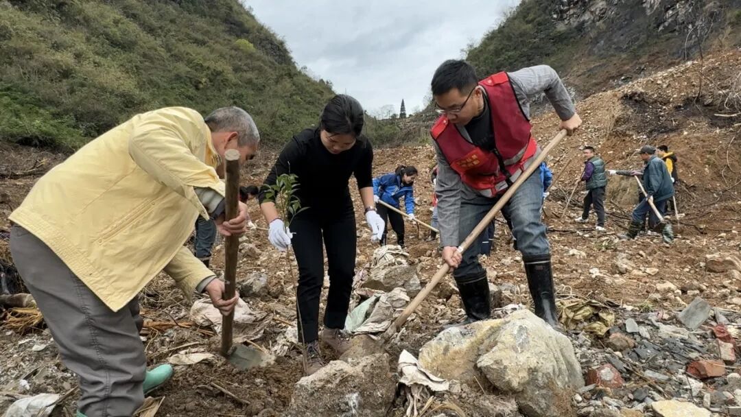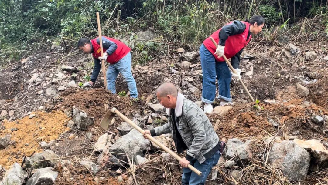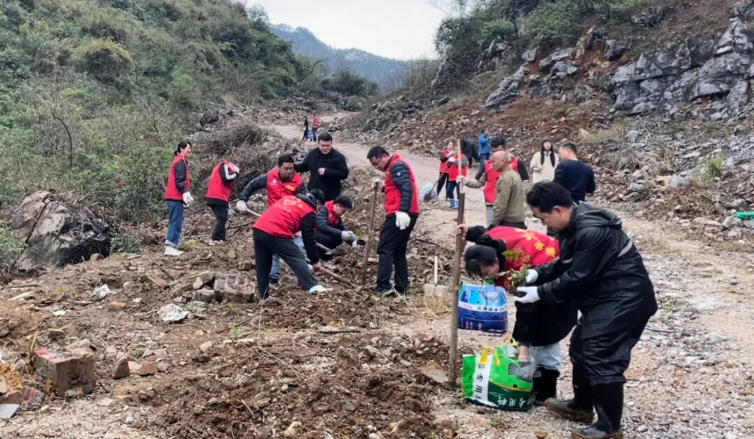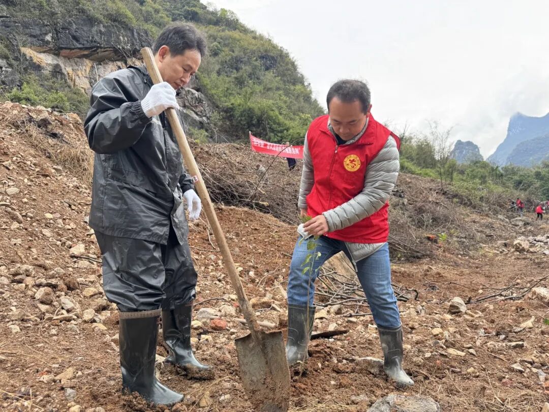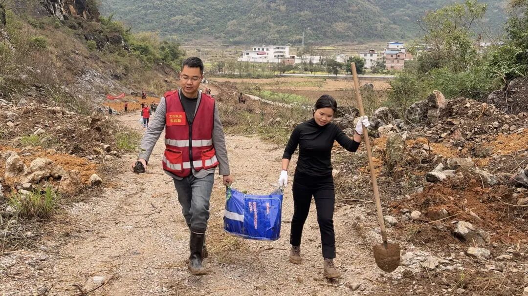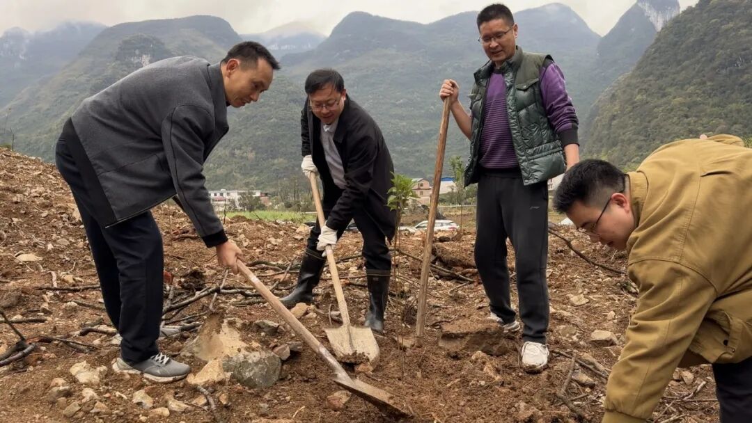 3月14日上午,六寮村山背屯植树现场