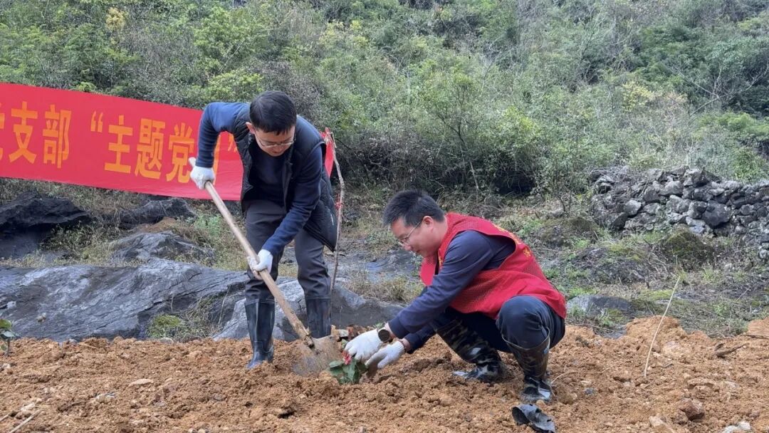 3月14日上午,党员们在六寮村山背屯植树